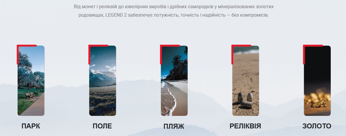 | Програми для пошуку | Поле, Парк, Пляж, Золото, Реліквії, Усі Метали |